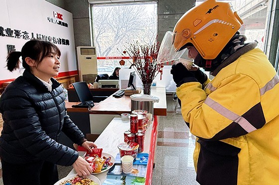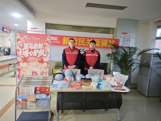 职场关爱驿站,贴心守护筑温馨。铁岭、盘锦、阜新分公司依托春节期间值班开放的营业职场、服务网点、理赔大厅等线下场所,为外卖骑手、快递小哥、环卫工人等新市民群体提供关爱服务,传递温暖、保障城市运力、彰显人保担当。搭建新市民关爱驿站37处,服务外卖骑手、快递小哥、环卫工人百余人次,提供免费茶水、暖汤、热粥、方便面等热食,开放卫生间,设立专属休息区,并提供免费口罩、暖宝宝、公用充电宝等物资。